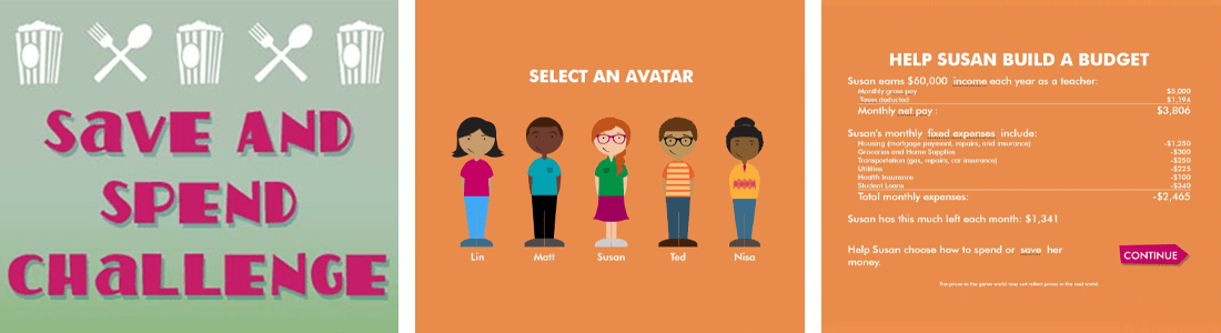We have a limited amount of money and lots of things to spend it on! Save and Spend Challenge tasks participants with building a budget for a character and then analyzing that character's financial choices to discover how their saving, spending, and budgeting habits can affect their financial outcomes. Do you have what it takes to play Save and Spend Challenge?
