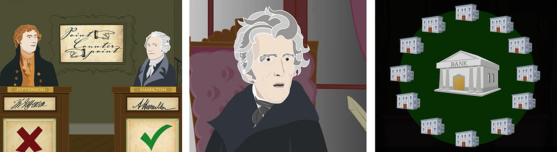 Did you know that the Federal Reserve System wasn’t the United States’ first central bank? The Fed is our nation’s third central bank. Learn more about how the First and Second Banks of the United States were created and why they ended, and the ideas behind the creation of the Federal Reserve System. Journey through our nation’s history of central banking with Road to the Fed.