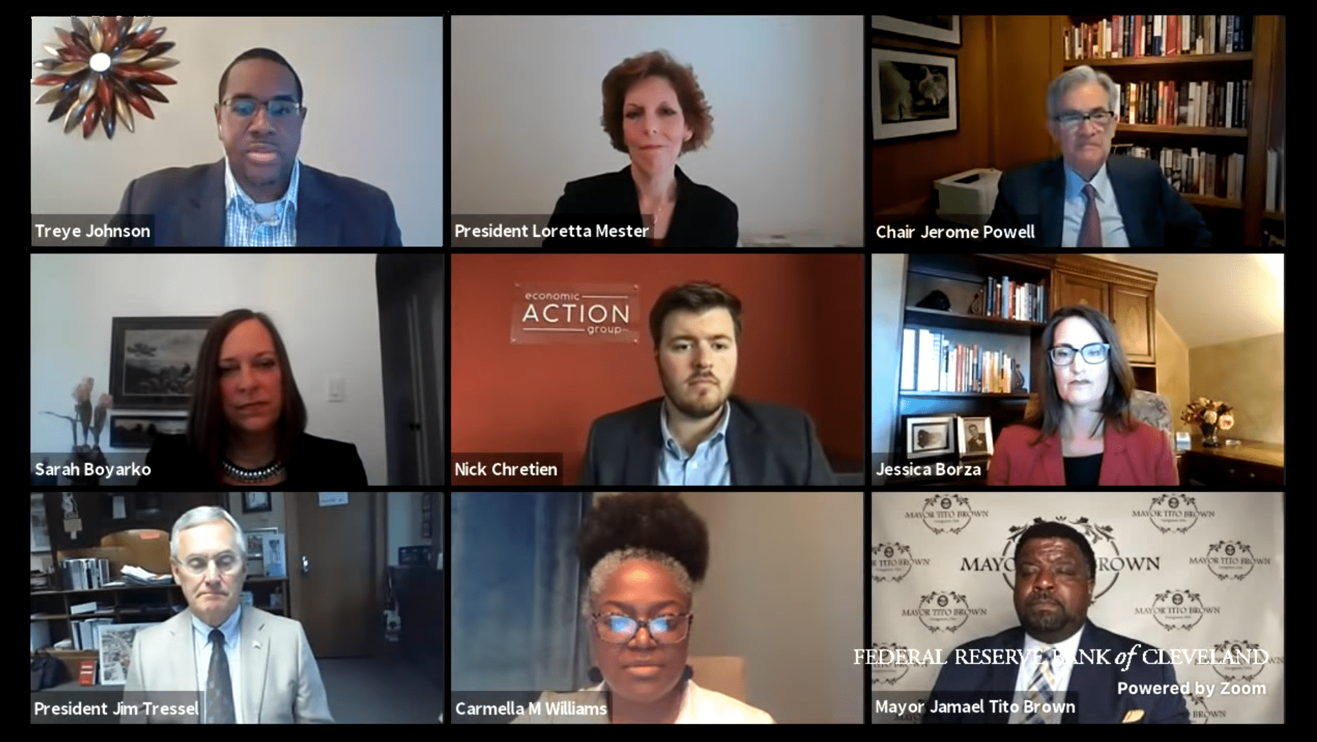 On June 19, 2020, Chair of the Board of Governors of the Federal Reserve System Jerome Powell, Federal Reserve Bank of Cleveland President and CEO Loretta J. Mester, and Youngstown-area community leaders and business owners came together virtually to discuss ways Youngstown has been helping their workforces build resiliency to better withstand shocks, including health emergencies and business closures.