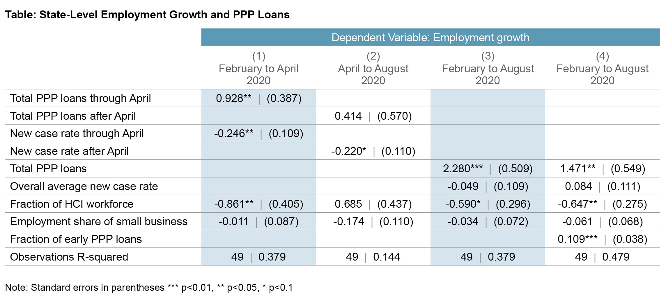 The COVID-19 pandemic presented extraordinary challenges for the US labor market. These extraordinary challenges were met with a set of extraordinary responses by policymakers. In this Commentary, we analyzed the effect of timely distribution of Paycheck Protection Program loans and how such timing ultimately affected a state’s individual employment recovery. Our results suggest that loans provided under the PPP umbrella in fact mitigated the negative effects of the COVID-19-induced recession to some extent. State-level data suggest that PPP loans equivalent to an additional week of payroll kept the state-level employment declines lower by somewhere between 1.5 percentage points to 2.3 percentage points. Moreover, conditional on receiving the same amount, states that received the bulk of their overall PPP loans early on had much smaller net employment declines over the entire period, February through August 2020. More research is needed to understand the true economic mechanisms behind these results and how state-level pandemic restrictions played a role.
