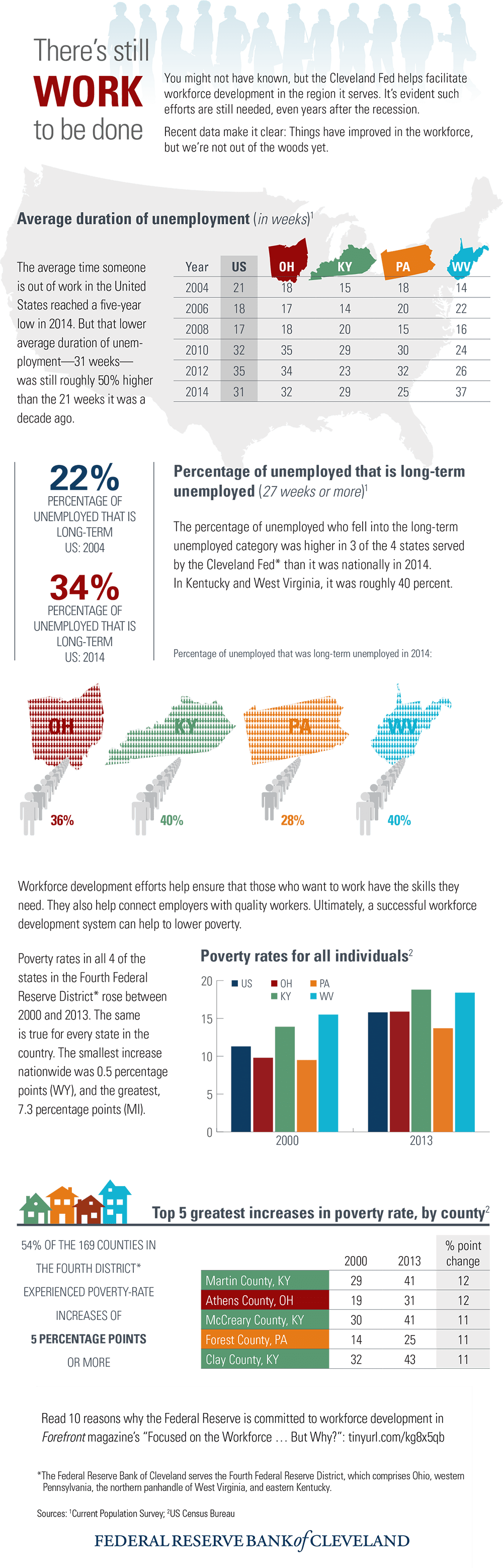 5. Previous work done by the Cleveland Fed on poverty points to a need for education and training. The conclusions reached in the 2006 Annual Report suggest that “programs encouraging the production of human capital through education and training may be the most fruitful approach to fighting the battle against poverty.” A well-functioning workforce development system is essential to lowering the rate of poverty.